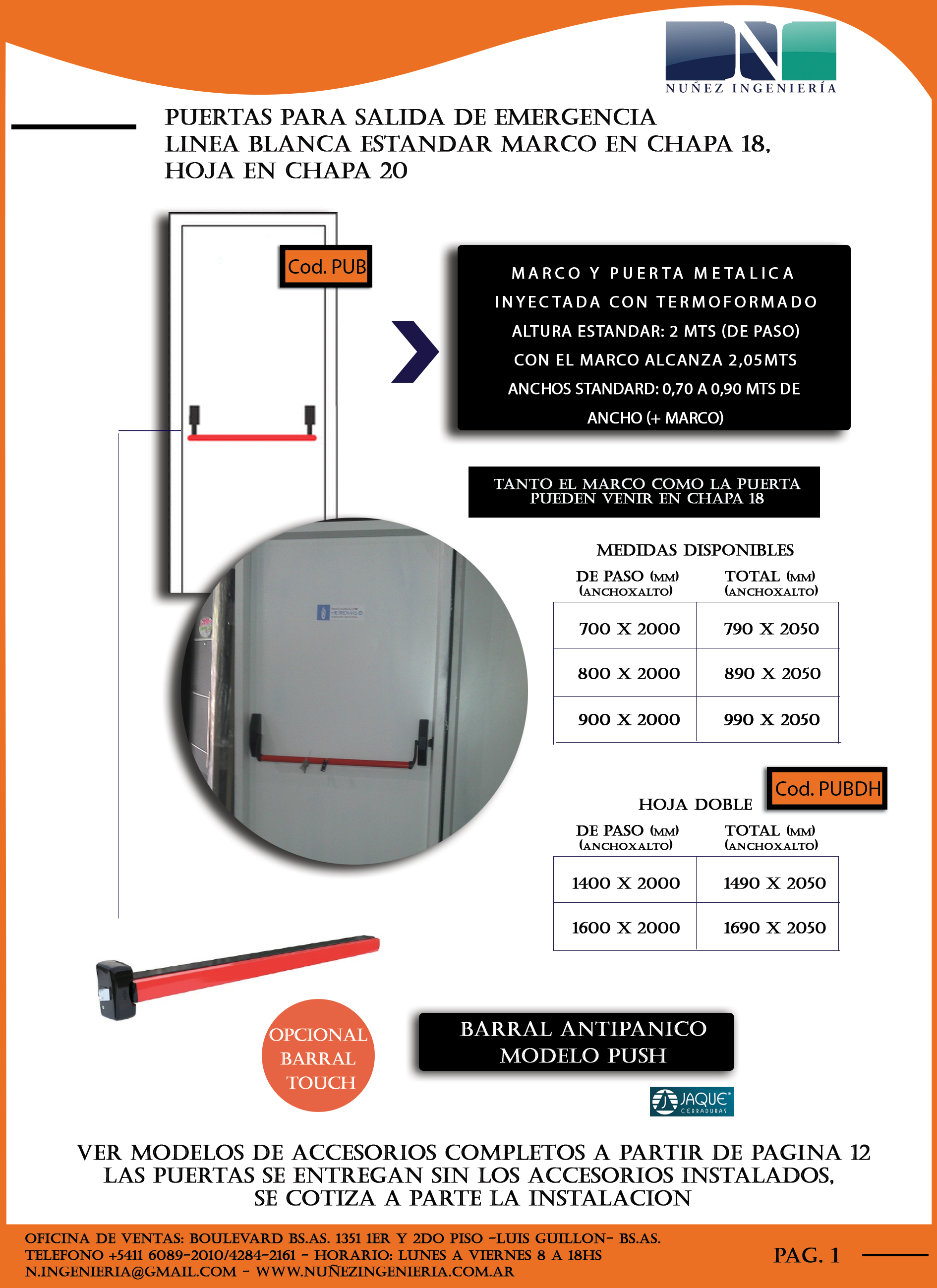 Puertas Ignífugas, homologadas por el Instituto Nacional de Tecnología Industrial (INTI) en FR30, FR60, FR90 y doble hoja en FR30, FR60.(Páginas 7, 8, 9 y 10 del Catálogo Online).